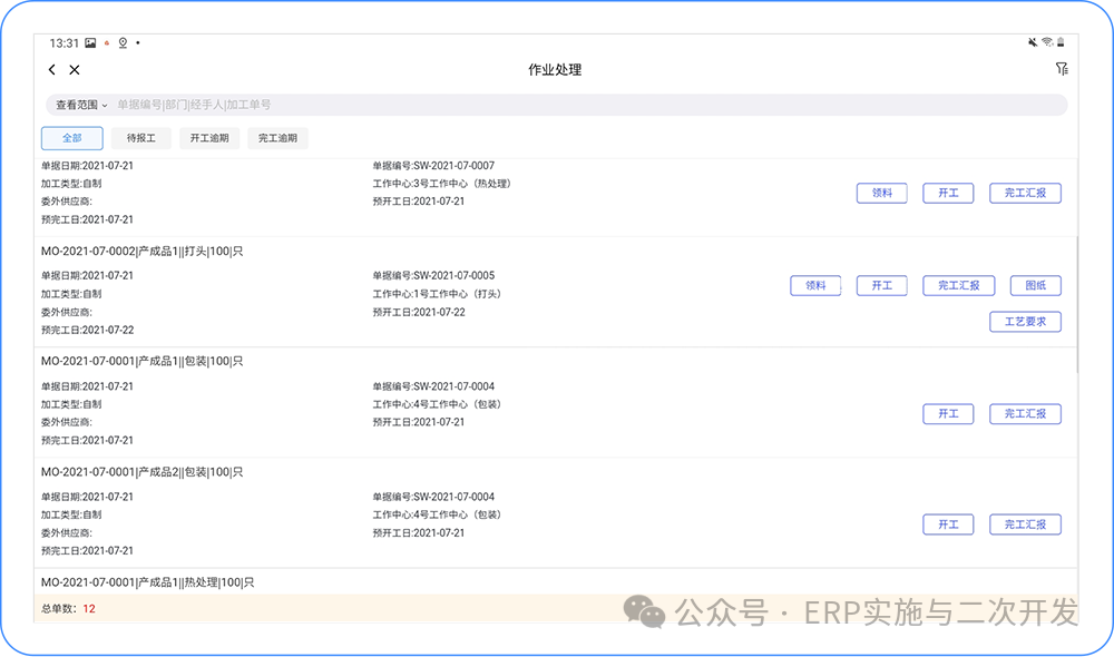 2 支持设置是否根据工序领料。工序派工时,可通过选项设置工序派工时是否显示材料明细以及是否需要按工序领料 3支持批量派工,可以把需要派工的任务批量的派工到相应的工作中心。派工时可以看到各工作中心可以提供的能力、已经安排的任务以及本次任务安排后能力的情况 4支持派工工作台,通过列表+甘特图的形式展示已经安排的各工序的任务,方便调整和查看 5支持工人作业工作台。可查看工人的作业任务、图纸、工艺要求等信息,并进行领料、开工、完工等业务处理 具体操作步骤: 1 选项中勾上派工相关参数 2 新增工厂日历、设备、工作中心档案 3 设备可设置工厂用于生产的设备信息,可设置设备每小时的产量,当设备属于某个工作中心时,会默认把产量带到工作中心中 4 工作中心一般是独立完成一道工序的单元,可设置工作中心默认的班组、工人、设备等信息。可设置每小时的产量,产量用于计算工序派工的产能时使用。注意:如果要知道工序派工的能力,则必须要设置工作中心 5工序档案、工艺路线、物料清单、加工单工序明细增加标准工时,标准工时可以带入到工序派工单上,工序派工时根据标准工时计算需要的产能的情况。注:目前不支持设置工时单位,默认按小时。这四个档案的设置均是默认设置,最终计算时以工序派工单的单位标准工时为准 6 可以进行工序派工,派工时可以根据选项设置是否显示材料明细。显示材料明细时,工序派工单有工序明细时,需要按工序派工单领料,不带入工序派工单的材料明细,可以按加工单领料。加工单的一行材料明细只能生成工序派工单再领料或者由加工单生成采购出库单 不显示材料明细,领料时按生产加工单领料,不能按照工序领料 8 派工工作台显示任务列表+甘特图+能力情况。可在任务列表快速修改任务的预开工、预完工日期调整任务安排,也可以通过甘特图的拖拽调整任务安排。调整完成后,刷新能力,可实时看到调整完的能力情况。 支持有限产能排产视图和无限产能排产视图 9 工人工作台 工人作业的工作台,可以显示工人待处理的任务、查看图纸、工艺要求,可以进行领料、开工、完工等业务处理,也可进行数据查询 可以到工序派工单的条码进行领料、开工、完工的处理 支持安卓版的手机、平板、工控一体机 10 报表查询 可以查询派工单报表及的开工、完工情况的看板 阅读原文:https://mp.weixin.qq.com/s/g9WgokIwJ5n2K9r2urjnNg 点晴模切ERP更多信息:http://moqie.clicksun.cn,联系电话:4001861886 该文章在 2025/7/9 18:56:29 编辑过 |