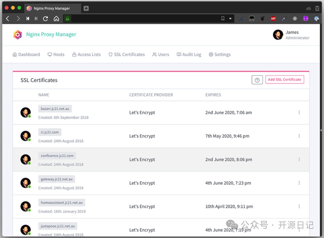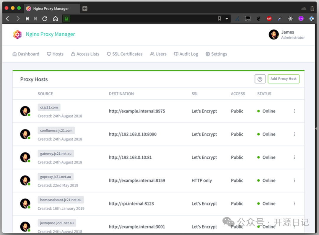 这款开源工具直接让你躺平!简单易用、界面好看,功能齐全的 Nginx Proxy Manager 绝了,完全适合刚入门的小白,也能满足高级玩家的要求。立刻一起来看看这个不可错过的宝藏项目吧!