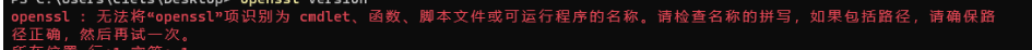 openssl : 无法将“openssl”项识别为 cmdlet、函数、脚本文件或可运行程序的名称。请检查名称的拼写,如果包括路径,请确保路径正确,然后再试一次。