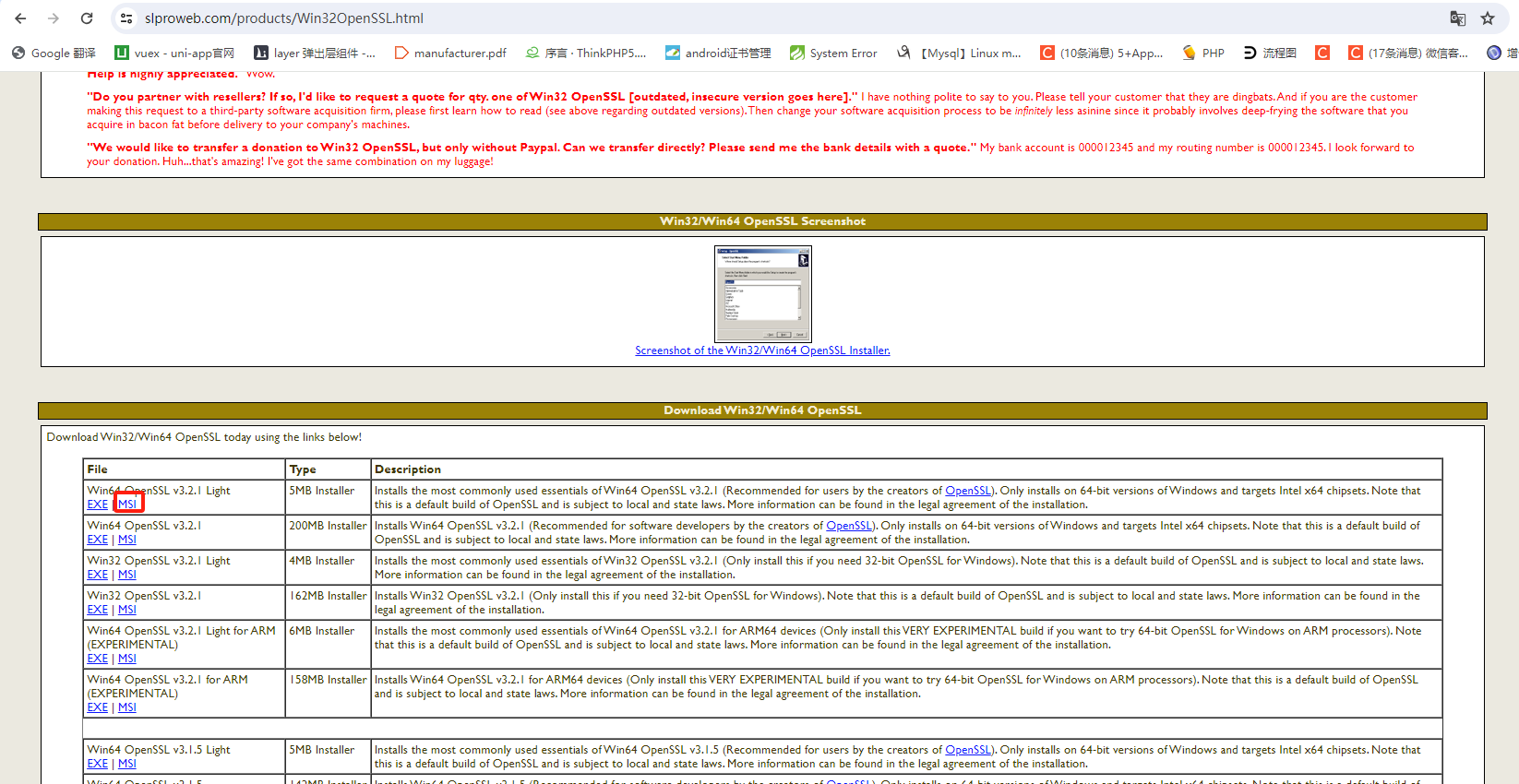前往网站下载:Win32/Win64 OpenSSL Installer for Windows - Shining Light Productions