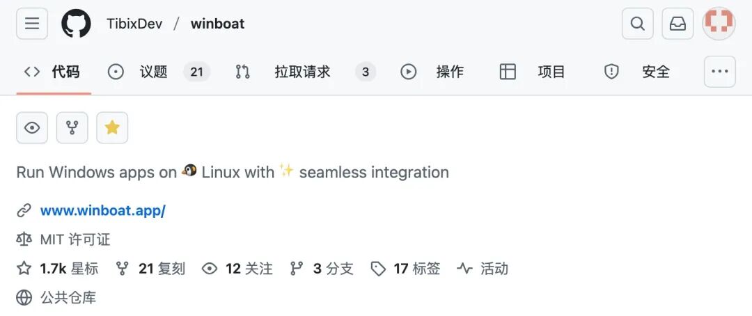 从 GitHub Releases 下载最新 Linux 构建:AppImage(便携格式,大多数发行版兼容)或 Unpacked(原始文件,运行 linux-unpacked/winboat);克隆 git clone https://github.com/TibixDev/WinBoat.git;构建:npm run build:linux-gs(生成 dist/ 中的 AppImage 和 Unpacked);构建客端服务器:npm run build-guest-server;使用流程