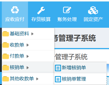 操作步骤:FMS-应收应付-核销单-新增核销单,如下图所示: