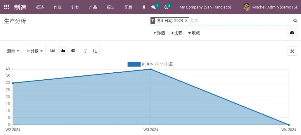 工作中心根据已完成的工单自动记录效率数据,提供整体设备效率(OEE)等有用指标。并且记录工人在制造活动上花费的确切时间,提供有价值的成本信息和生产效率洞察: