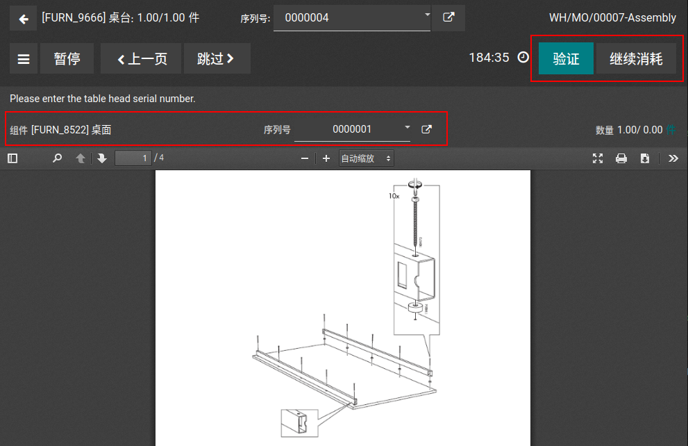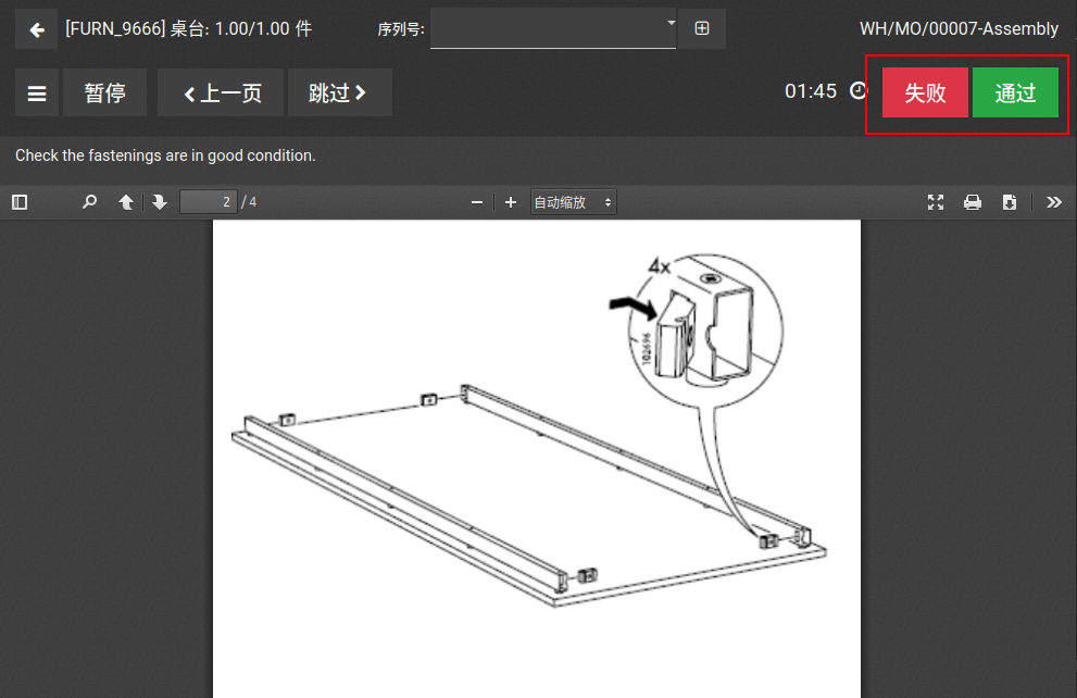 在BoM里,设计分步操作,并纳入质量控制点,为装配工人提供明确的指导。在启动生产订单并触发工单后,工人可通过平板访问操作指南。当装配工人通过平板电脑完成工单时,系统根据BoM中设置的操作跟踪材料登记和任务完成情况。工作人员还可以从平板电脑提出质量警报和改进建议,为工作流程优化提供有用的反馈: